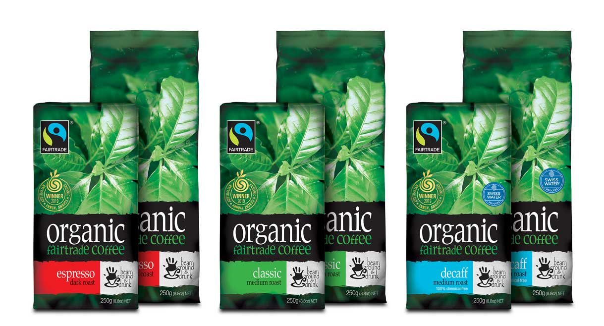 Bean Ground and Drunk is a Fair Trade and Organic coffee range available in dark roast, medium roast, decaf, and ground formats. Its Fair Trade certification supports farmers through equitable pricing and ethical practices. It is also ACO certified organic, as it supports the use of materials and farming practices that enhance the ecological balance of the environment. This aligns closely with coffee and sustainability values promoted by Boncafé and provides consumers with access to verified sustainable coffee beans.